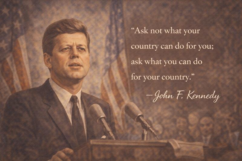 国があなたのために何をしてくれるのかを問うのではなく、あなたが国のために何を成すことができるのかを問うて欲しい。