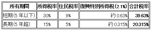 • 所有期間が5年を超えるかどうかで税率が大きく変わります。