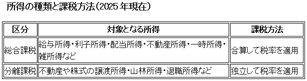 日本の所得税は、原則として1年間の所得を合計して計算する「総合課税」が基本です。
