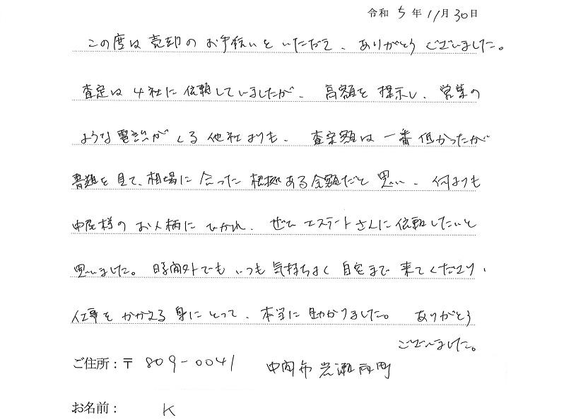 中間市岩瀬西町 K様