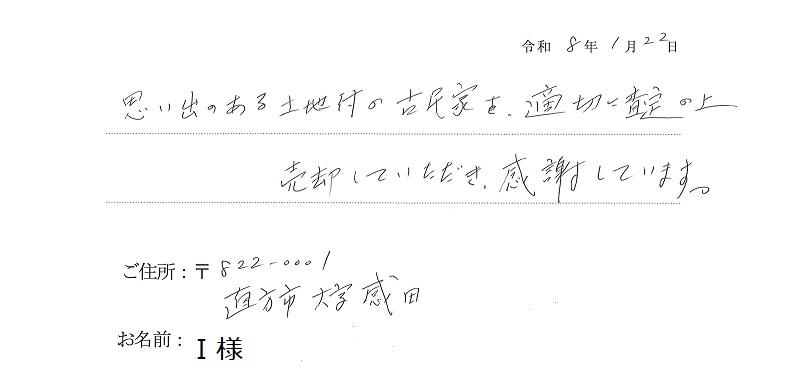 思い出のある土地付の古民家を、適切に査定の上 売却していただき、感謝しています。